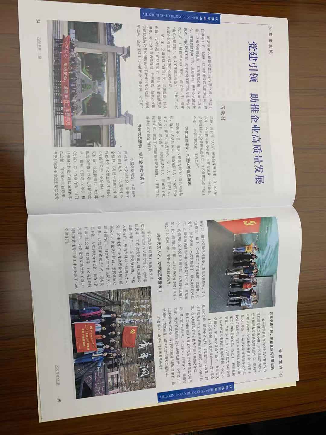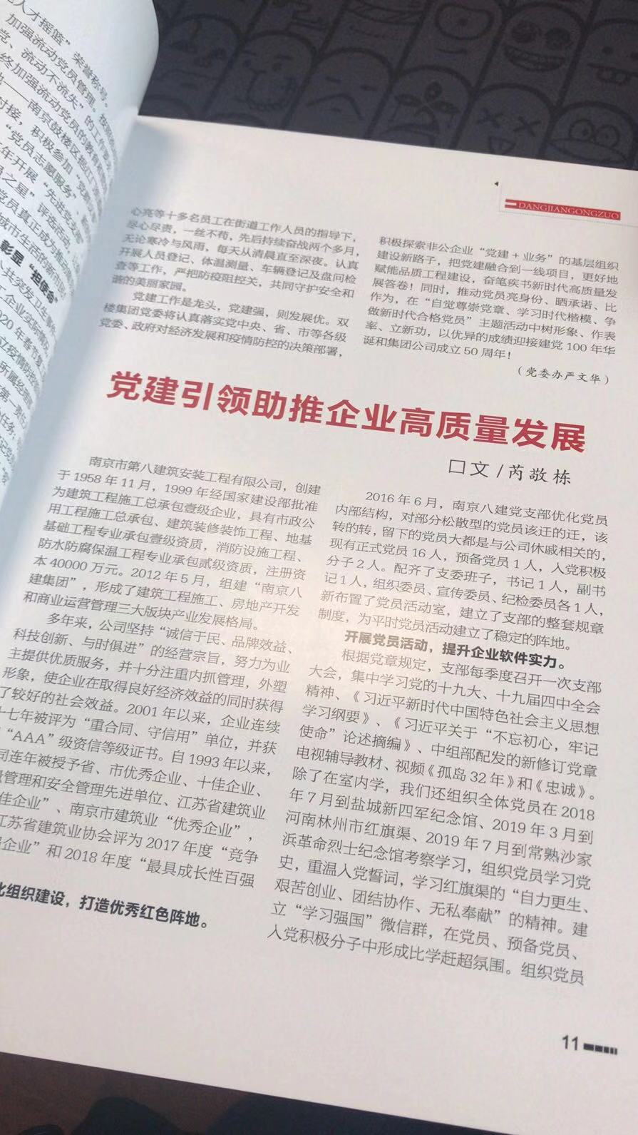 2024年9月,南京建筑業(yè)協(xié)會(huì)主辦的《南京建筑業(yè)》(第105期)刊登了芮敬棟同志《深化黨紀(jì)學(xué)習(xí) 筑牢紀(jì)律防線——南京八建黨支部黨紀(jì)教育活動(dòng)紀(jì)實(shí)》一文 -