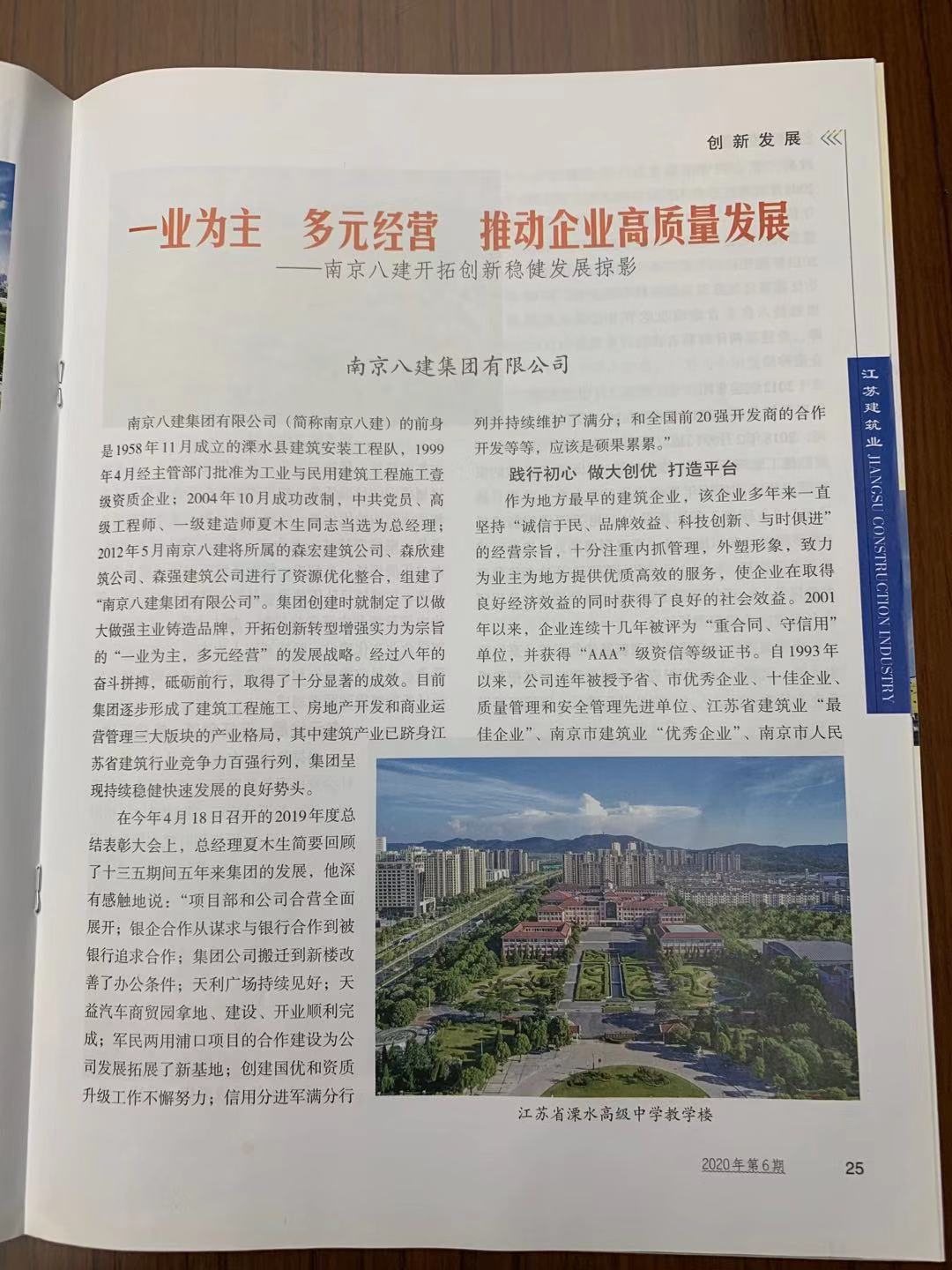 《一業(yè)為主 多元經(jīng)營 推動(dòng)企業(yè)高質(zhì)量發(fā)展》發(fā)表在2020年6月《江蘇建筑業(yè)》雜志上。 -