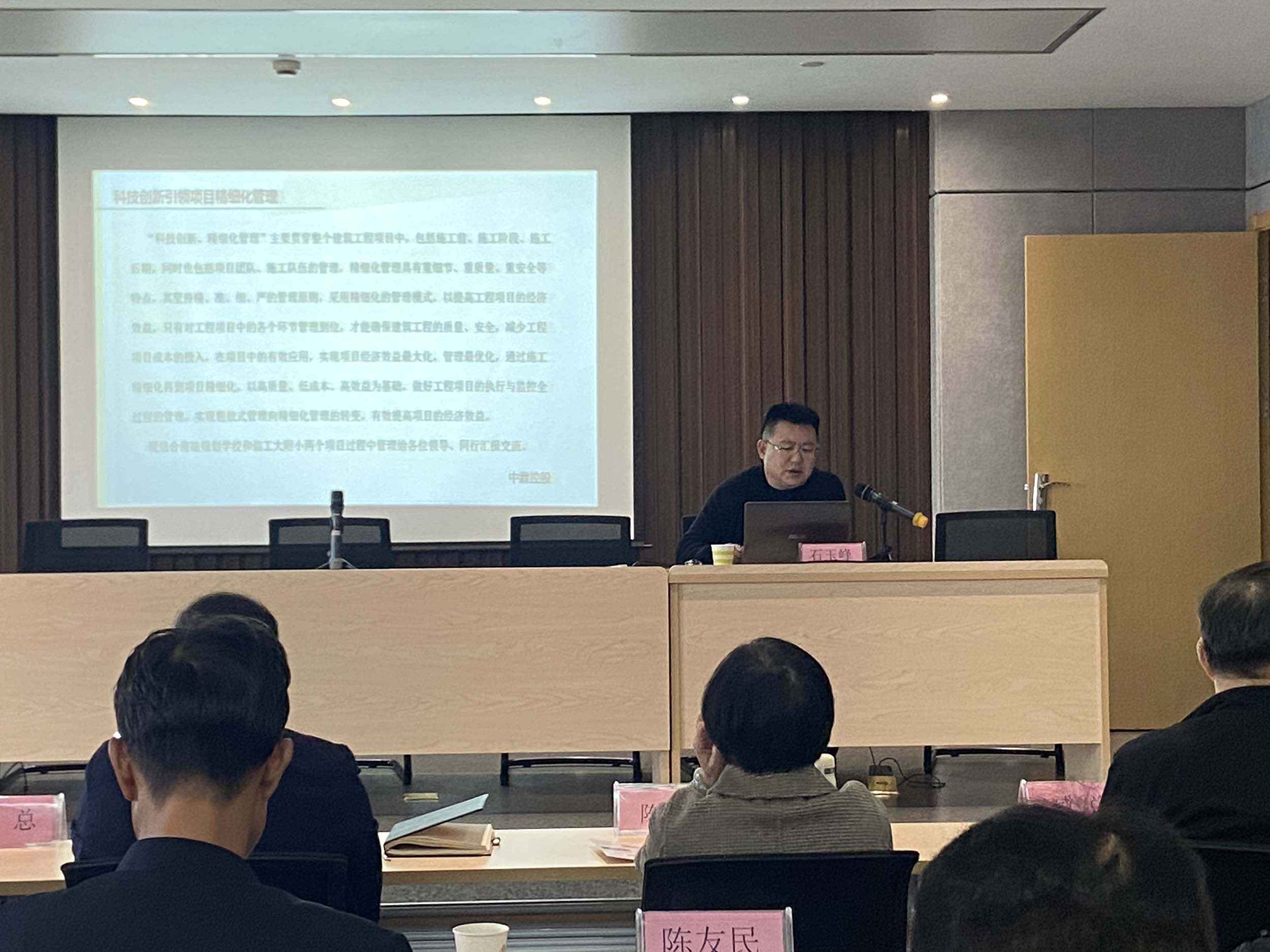 2022年11月19日,八建首屆論壇,項(xiàng)目部經(jīng)理石玉峰作《科技創(chuàng)新引領(lǐng)項(xiàng)目精細(xì)化管理》工作交流匯報(bào)和經(jīng)驗(yàn)介紹 -