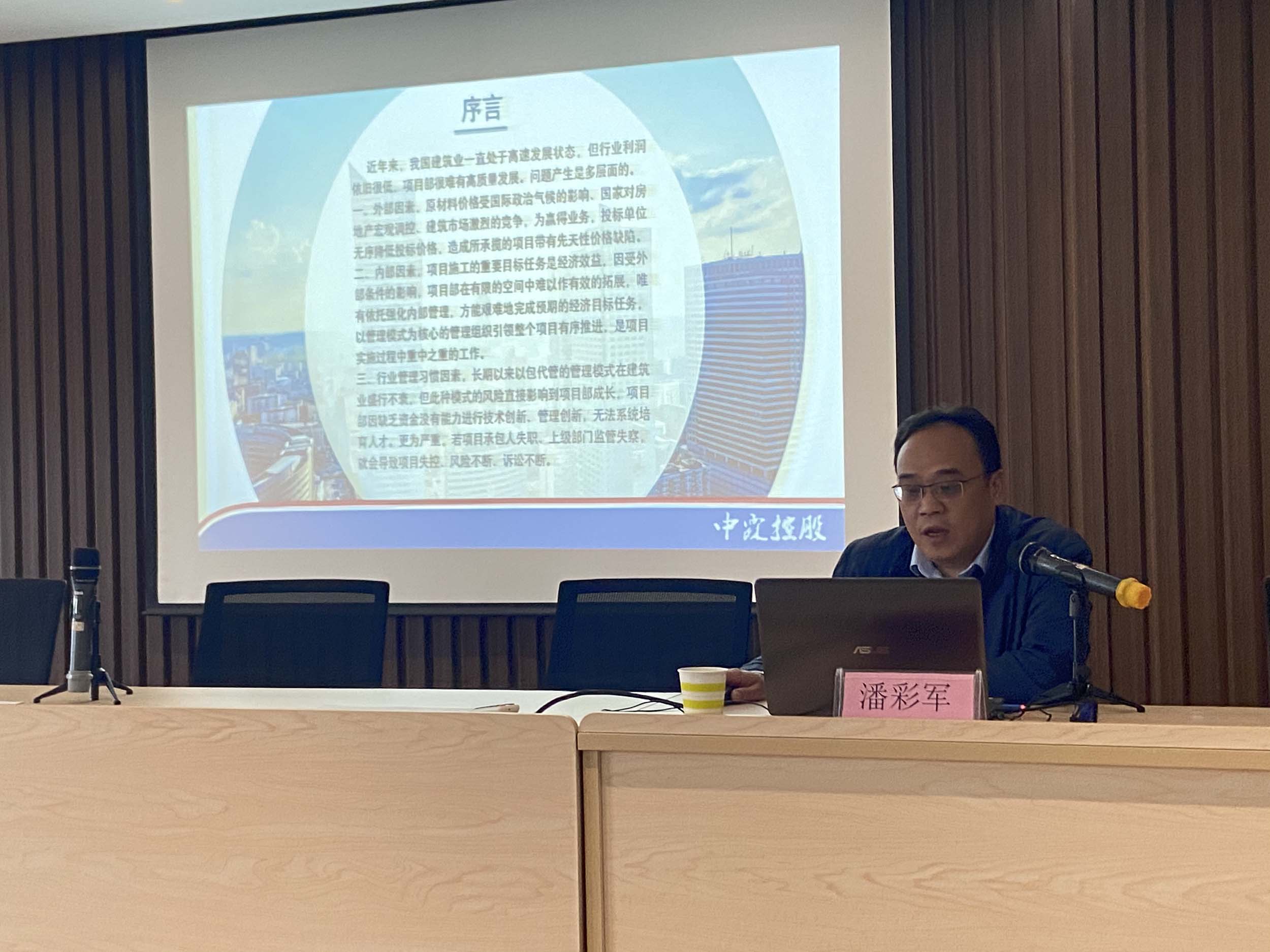 2022年11月19日,八建首屆論壇,項(xiàng)目部經(jīng)理潘彩軍作《項(xiàng)目部股份制管理的探討》工作交流匯報(bào)和經(jīng)驗(yàn)介紹 -