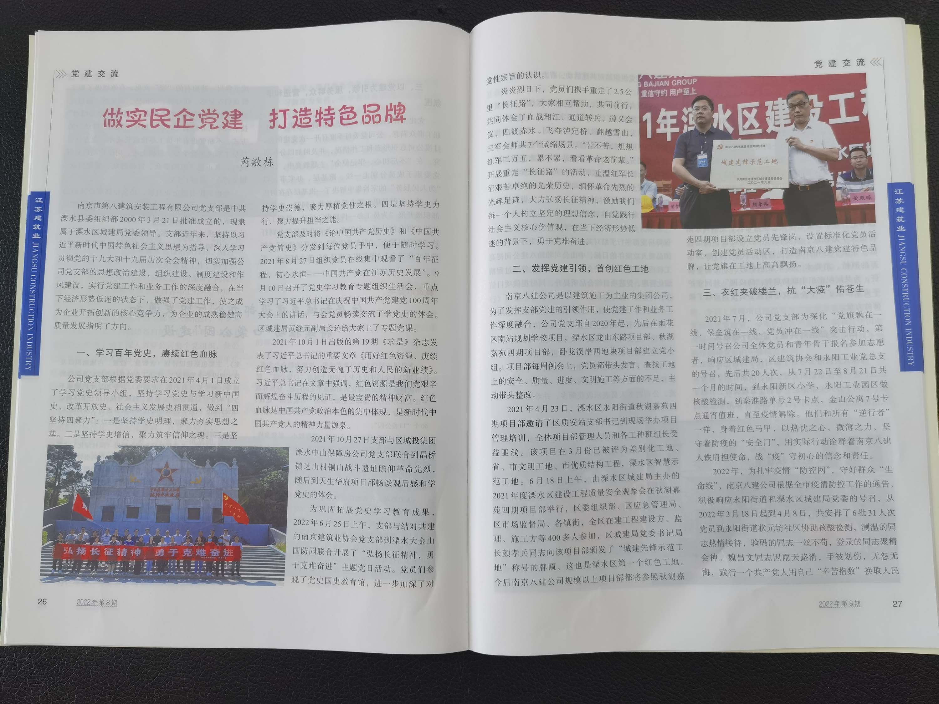 2022年8月《江蘇建筑業(yè)》刊登了芮敬棟同志所寫《做實(shí)民企黨建,打造特色品牌》文章 -
