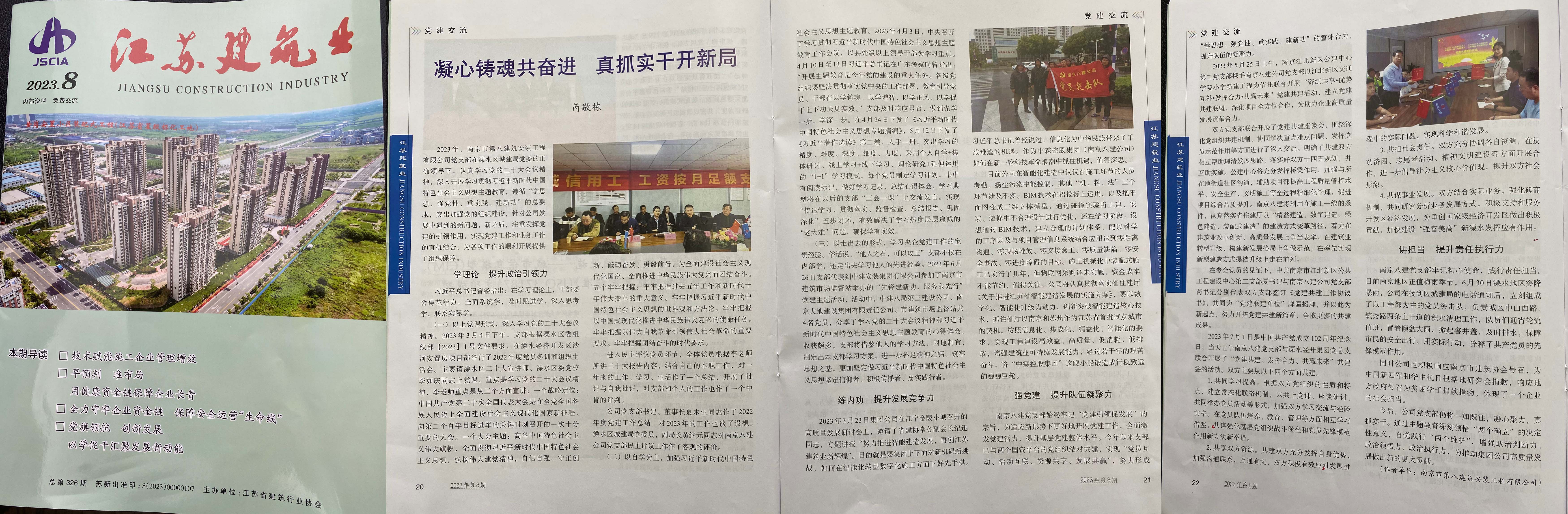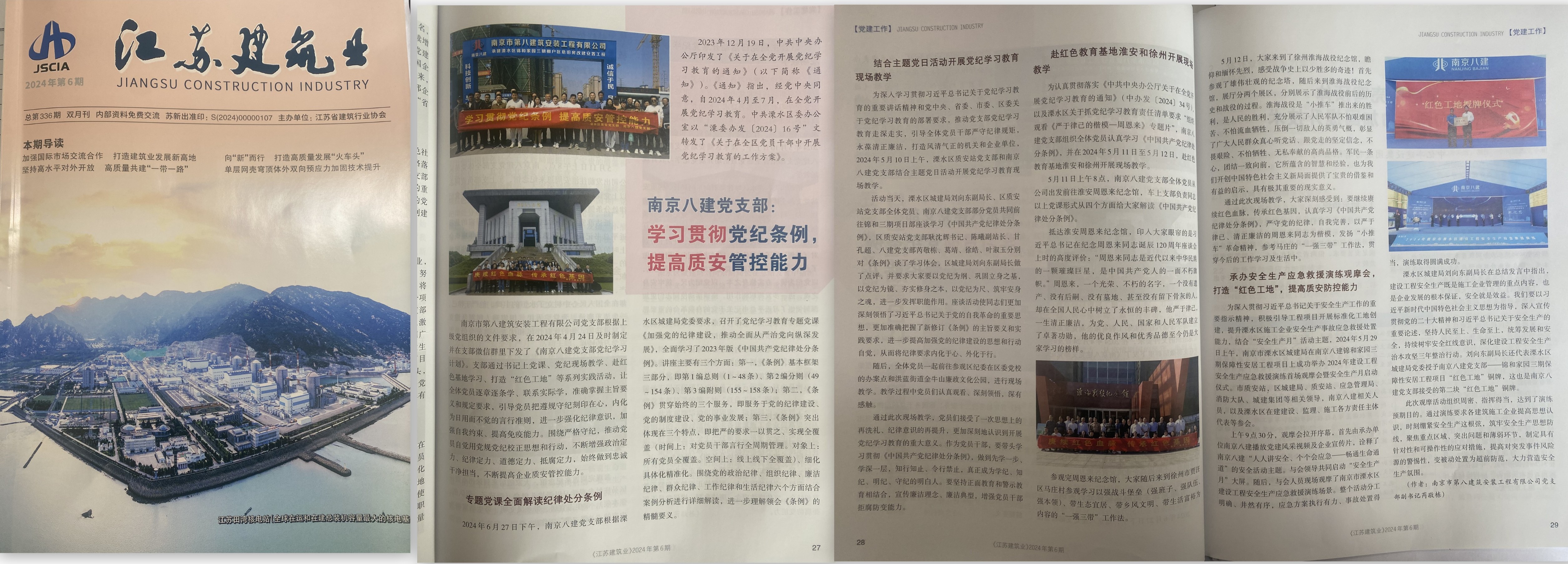 2024年6月,江蘇建筑業(yè)協(xié)會(huì)主辦的《江蘇建筑業(yè)》(2024年第6期)刊登了芮敬棟同志《南京八建黨支部:學(xué)習(xí)貫徹黨紀(jì)條例,提高質(zhì)安管控能力》一文 -