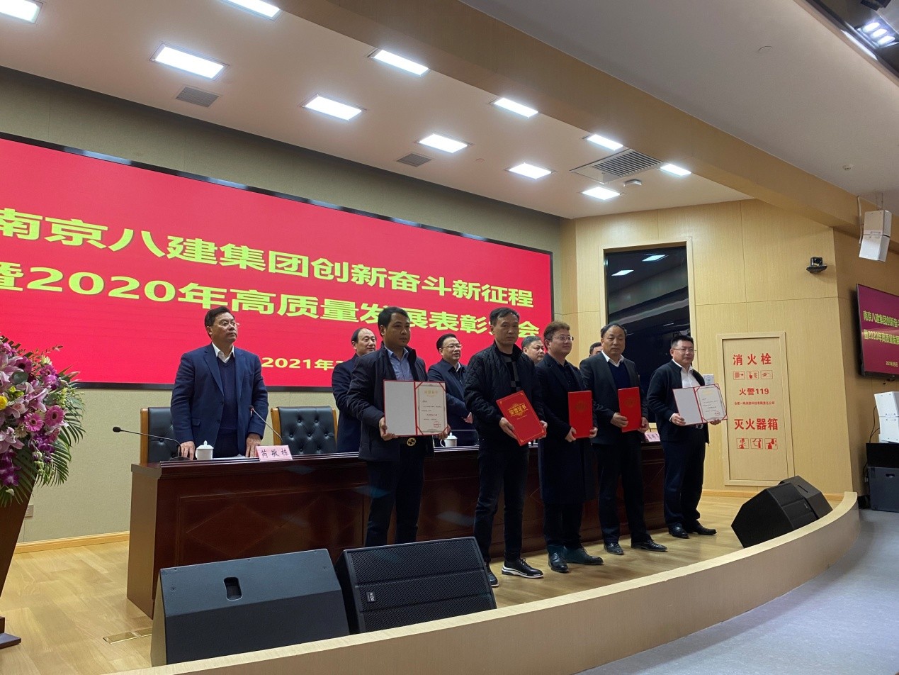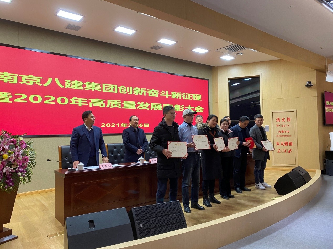 為鼓勵(lì)先進(jìn),樹(shù)立典型,集團(tuán)于2021年3月6日下午在溧水區(qū)委黨校3號(hào)培訓(xùn)樓一樓會(huì)議室召開(kāi)2020年度高質(zhì)量發(fā)展表彰大會(huì),授予陳德超等11名同志為“優(yōu)秀員工”, 朱劍等8名同志為“優(yōu)秀技術(shù)負(fù)責(zé)人”,夏友華等7名同志為“優(yōu)秀管理者”,潘彩軍等13名同志為“優(yōu)秀項(xiàng)目經(jīng)理”,市政部等6個(gè)部門(mén)為“優(yōu)秀團(tuán)隊(duì)”稱(chēng)號(hào),并予以表彰。號(hào)召全體員工向他們學(xué)習(xí),為圓滿(mǎn)完成2021年的各項(xiàng)目標(biāo)任務(wù)而奮斗,為八建集團(tuán)高質(zhì)量發(fā)展作出新貢獻(xiàn)。